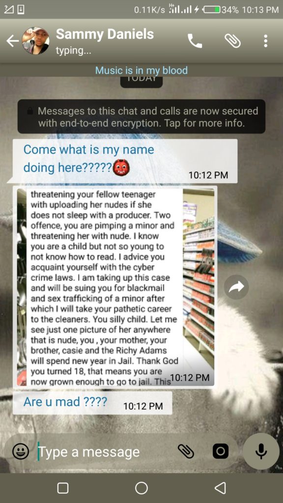 Earlier today, we brought you reports about how Regina Daniels is blackmailing a teenager to sleep with a Movie producer, else she’d release her nu-de pictures.