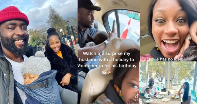 Big Brother Naija star, Khafi, surprised her husband, Gedoni Ekpata, with a trip to Montenegro to celebrate his birthday.