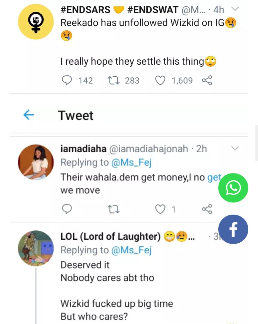 However, following the comments of the smile crooner on Twitter, a look at Reekado’s Instagram page, shows that he has unfollowed Wizkid on the photo sharing platform, and the realization has stirred up reactions amongst their fans on social media.