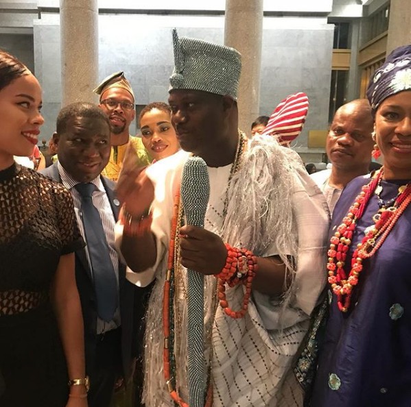 Veteran-retired Nollywood actress, Regina Askia and her beautiful daughter, Stephanie Hornecker were both pictured together with the Ooni of Ife, Oba Adeyeye Enitan Ogunwusi at a recent event in US.