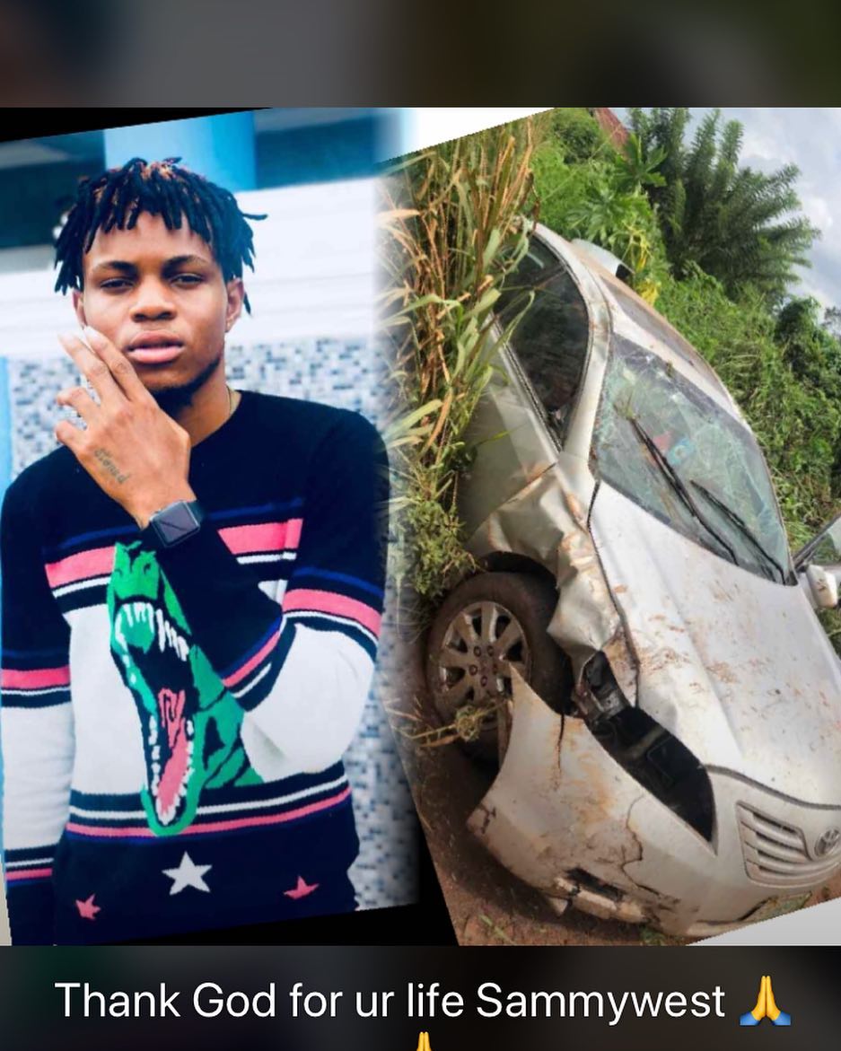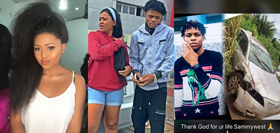 Regina Daniels’ brother survives car accident, after the car he was driving somersaulted three times, leaving the scene unhurt and without a scratch.