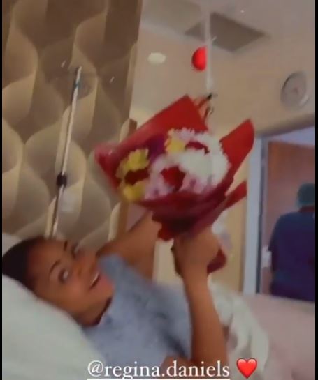 Billionaire wife and mother of one, Regina Daniels has been treated to a pleasant surprise by her co-wives, on her hospital bed as she undergoes surgery.