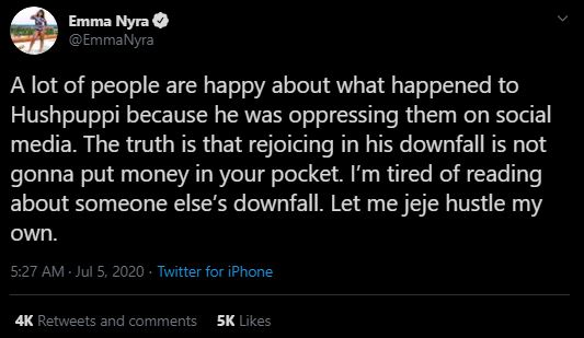 A lot of people are happy about what happened to Hushpuppi because he was oppressing them on social media. The truth is that rejoicing in his downfall is not gonna put money in your pocket. I’m tired of reading about someone else’s downfall. Let me jeje hustle my own.