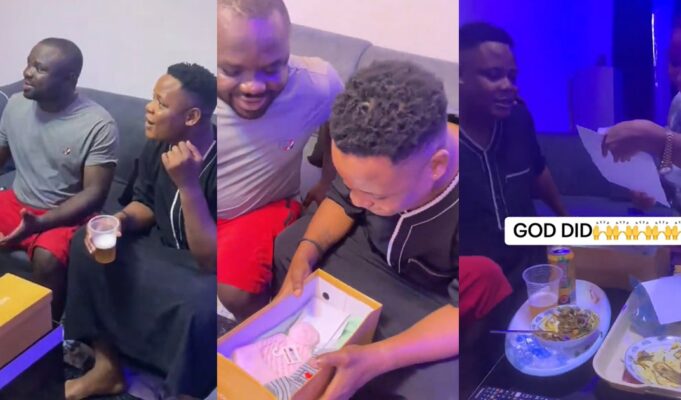 Double celebration as woman surprises her husband and her best friend with pregnancy news on his birthday (WATCH)