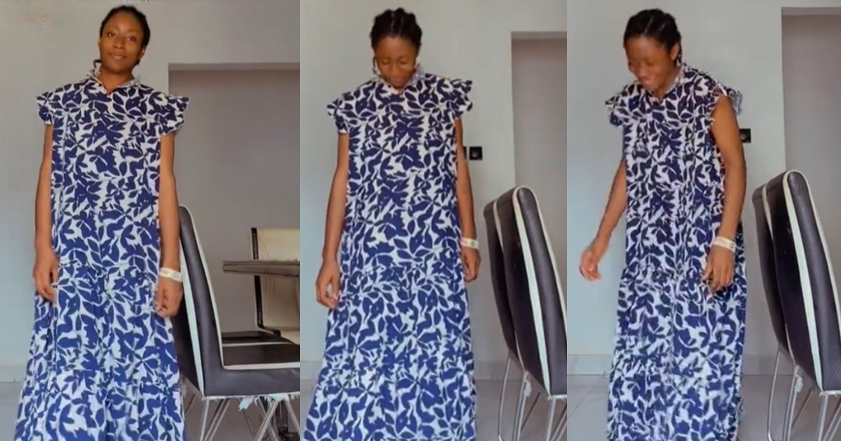 Showing off the oversized dress, the lady twirled in it; stating that this was the reason why she doesn’t allow her mum buy her clothes.