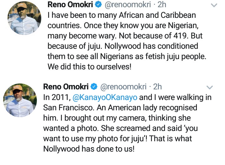 “I have been to many African and Caribbean countries. Once they know you are Nigerian, many become wary. Not because of 419. But because of juju. Nollywood has conditioned them to see all Nigerians as fetish juju people. We did this to ourselves!”