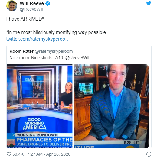 An ABC News reporter, Will Reeve joined a live news reporting session from his home but unbeknownst to him, positioned himself against the camera in a way that viewers could see a glimpse of his thighs.