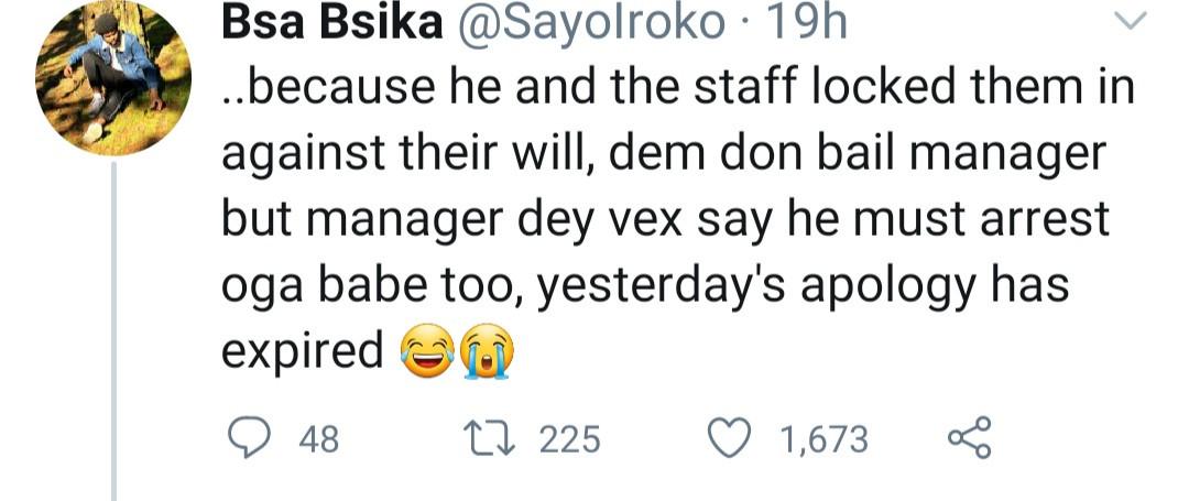 The lady got offended and allegedly slapped the manager. This led to chaos as the manager locked the doors and refused to let the women leave.