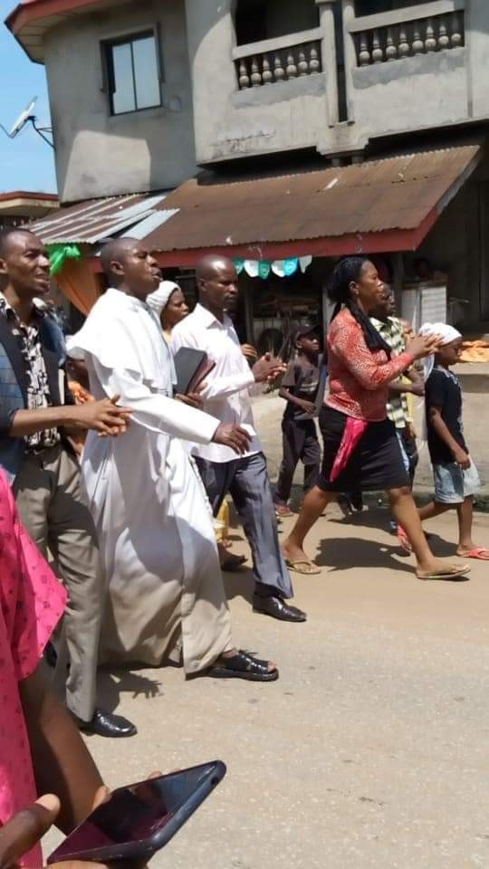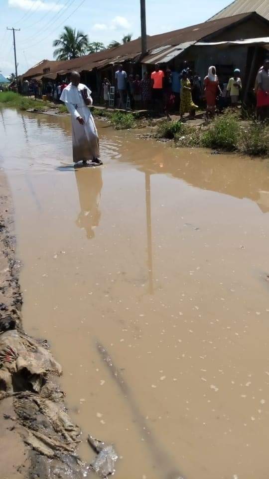 A Reverend Father identified as David Okechukwu, led members of his church to pray and protest over the deplorable state of Ohanku road in Aba, the commercial center of Abia state.