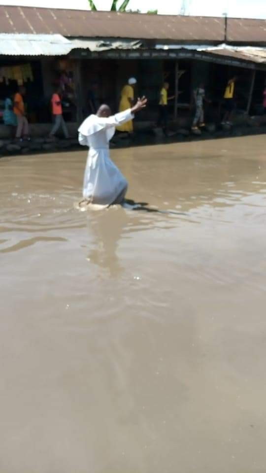 According to reports, the priest was disturbed by the deplorable state of the road which he and his members use frequently thus the clergyman led his parishioners to protest over the road and also pray for God to intervene and get the road fixed as soon as possible.