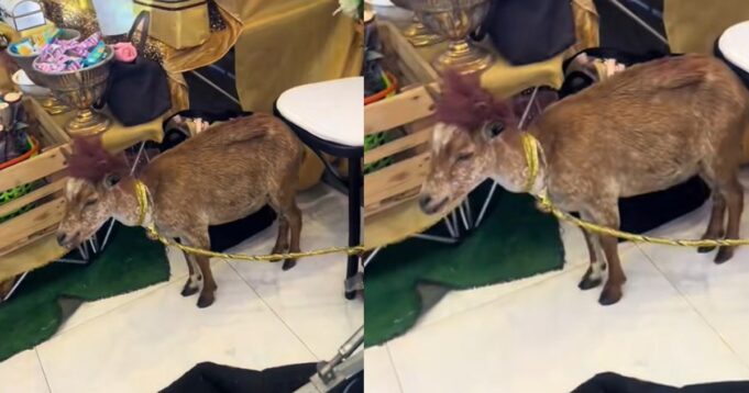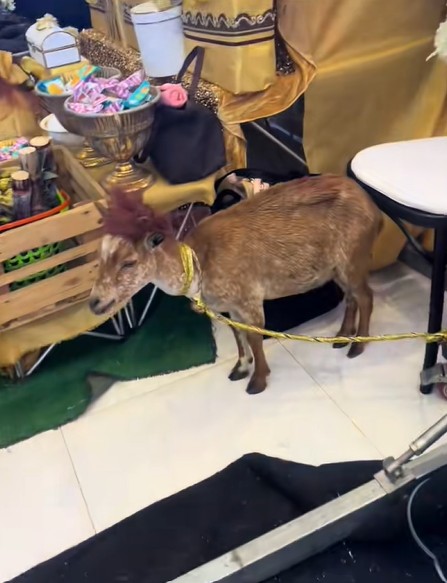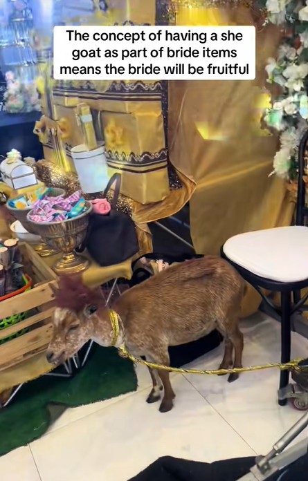 In the clip, the goat’s horns were seen adorned with ribbons for the ceremony, as it was an item on the bride’s list that was presented to the bride’s family from the groom’s family.