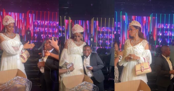 In a celebratory video, the-47-year old entrepreneur was spotted at the birthday party of the CEO of Whitestone Events Place, dancing and cheering to a song when she surprisingly handed a bundle of mint one thousand notes to the little boy.