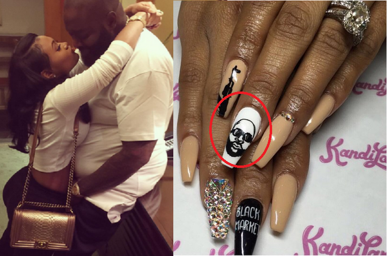 Rick Ross‘s beautiful fiancee, Lira Galore, decided to show the world that her rapper man not only has her heart but also her hands as she designed his face on her nails and the title of his next album “Black Market” embedded on it.