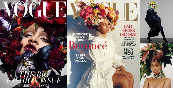 Rihanna on the British Vogue, while Beyonce was on the American Vogue.