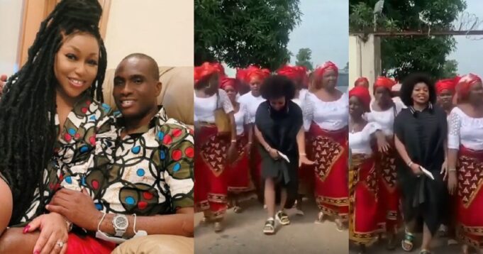 Veteran Nollywood actress, Rita Dominic, who recently tied the knot with her man, Fidelis Anosike, has been warmly welcomed to her new home with a family rite.