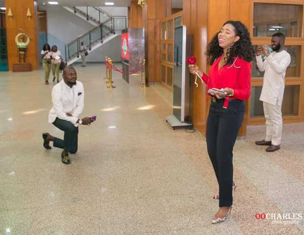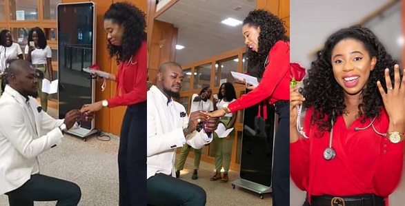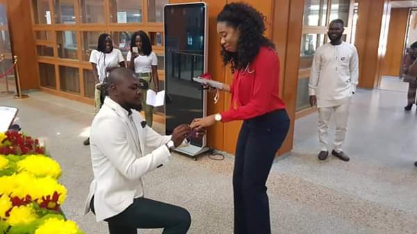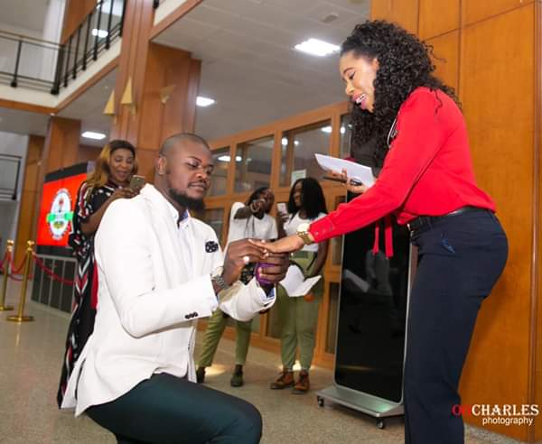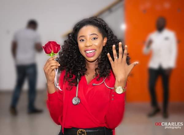 The lovely Nigerian lady identified as Bongy Usun took to her Facebook page to share the story of how her boyfriend proposed to her today while she was at work at the National assembly clinic.