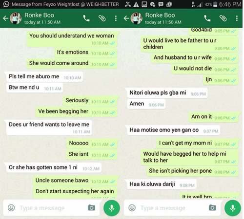 Meanwhile, the family of Ronke has released Whatsapp snapshots, showing a conversation between Lekan and one of Ronke’s friends, Ashabi.