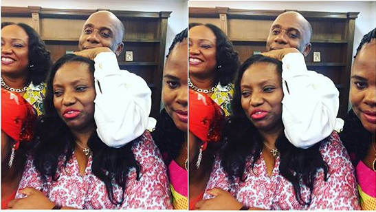 Former governor and ministerial nominee, Rotimi Amaechi had his ministerial screening at the senate earlier today. He was spotted thereafter laying his hands on his wife, Judith’s head showing a weird PDA.