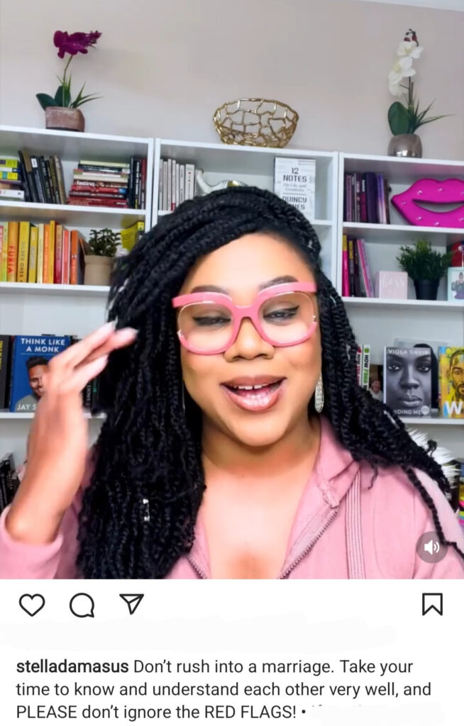 “Don’t rush into marriage. Take your time to know and understand each other very well, and please don’t ignore the RED FLAGS”, she added in the caption.