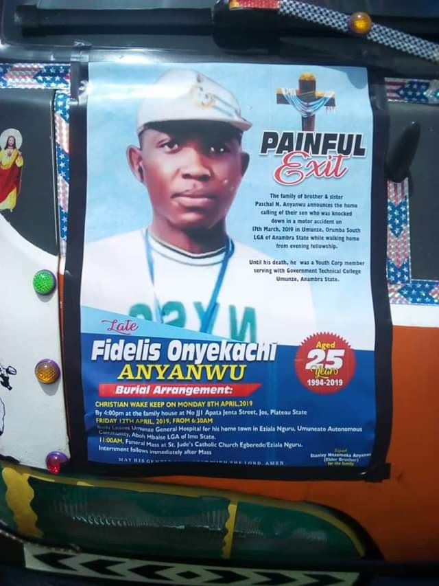 “Some time last month I made it viral in this group about our competent colleague serving under NYSC scheme here in Umunze that had a fatal accident.