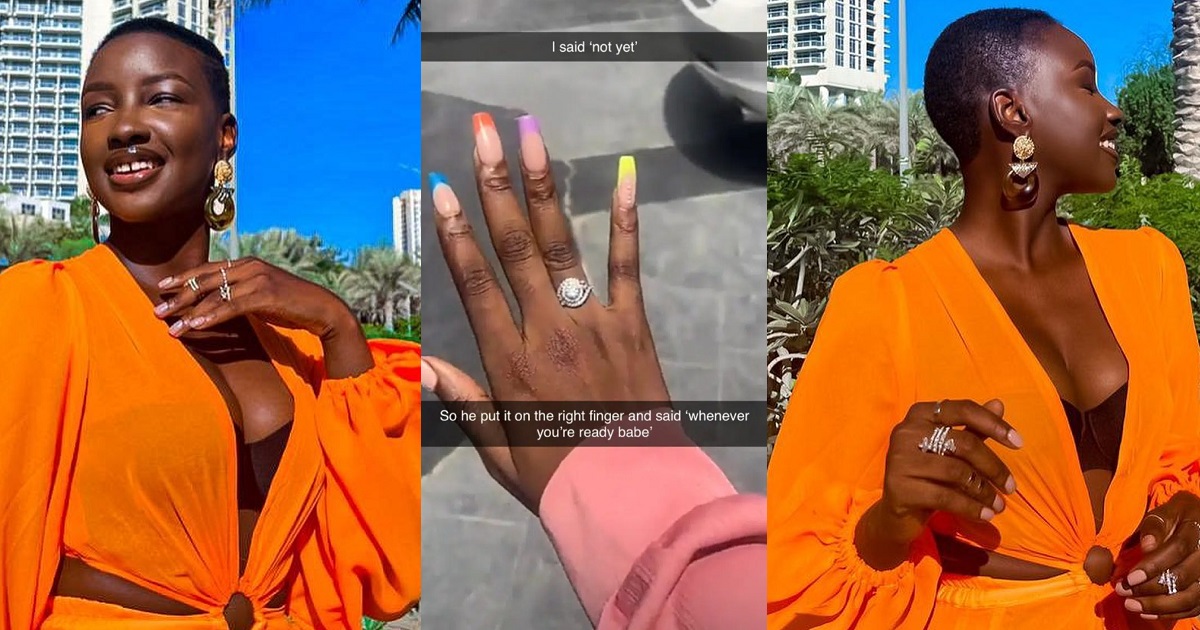 The 22-year-old revealed via her snapchat that her man had proposed marriage to her. However, when you would have thought Saskay would have given a resounding ‘Yes’, she told him she was not ready for marriage.
