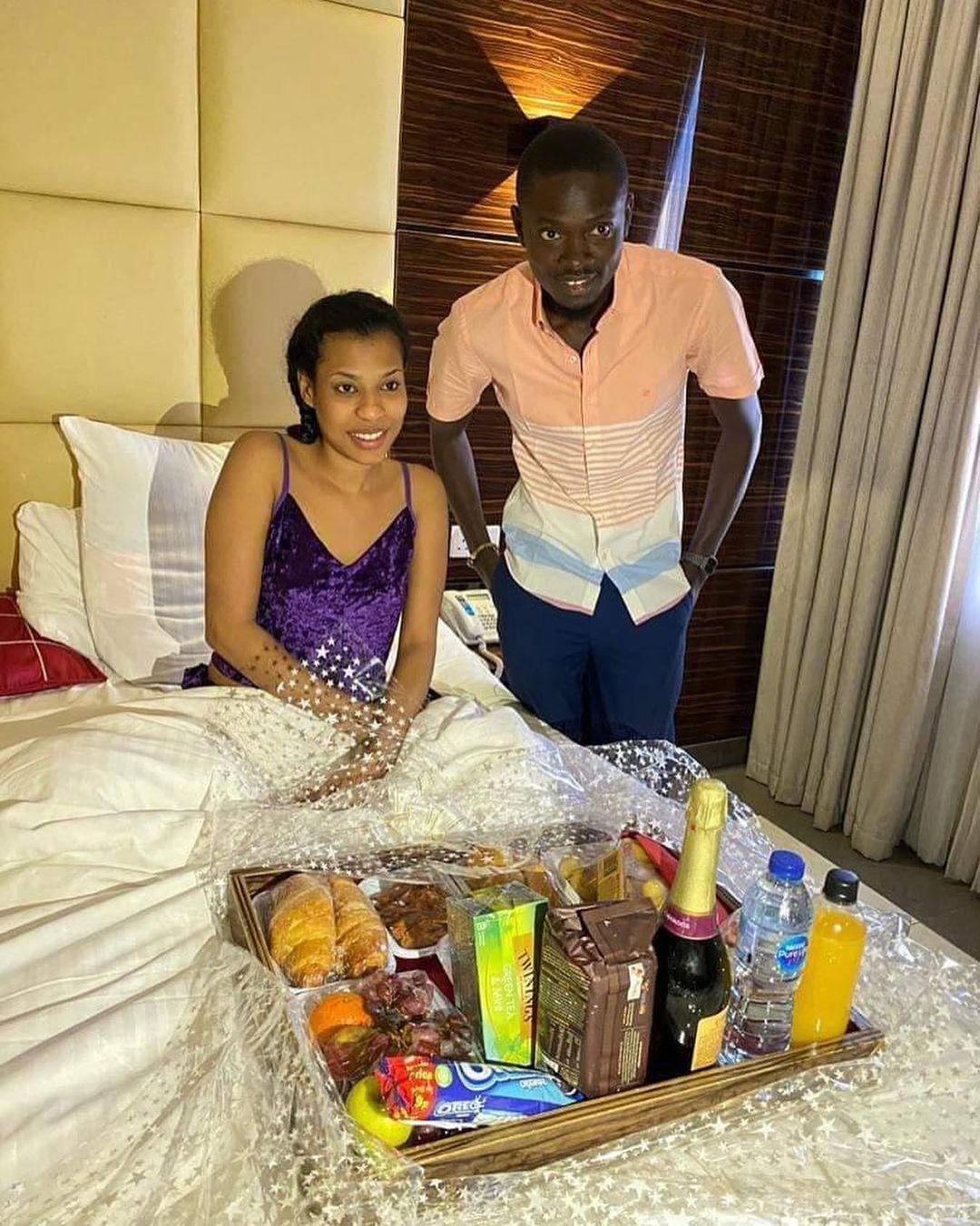A video that was shared online shows the moment former Big Brother Naija housemates, Saga and Nini were woken up with an exotic breakfast in bed.