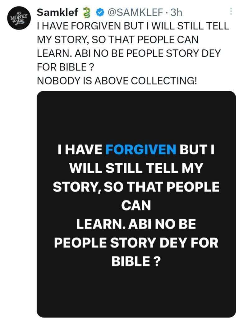 He, however, stated that he has forgiven Banky W but that wouldn’t stop him from speaking about his experience.