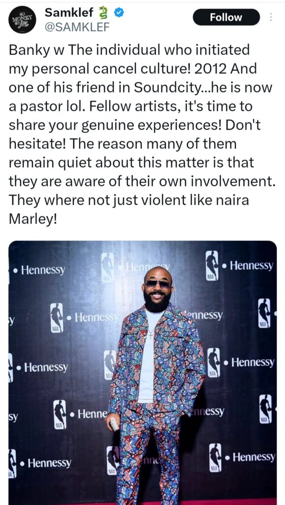 “Banky w The individual who initiated my personal cancel culture! 2012 And one of his friend in Soundcity…he is now a pastor lol. Fellow artists, it’s time to share your genuine experiences! Ron’t hesitate! The reason many of them remain quiet about this matter is that they are aware of their own involvement.