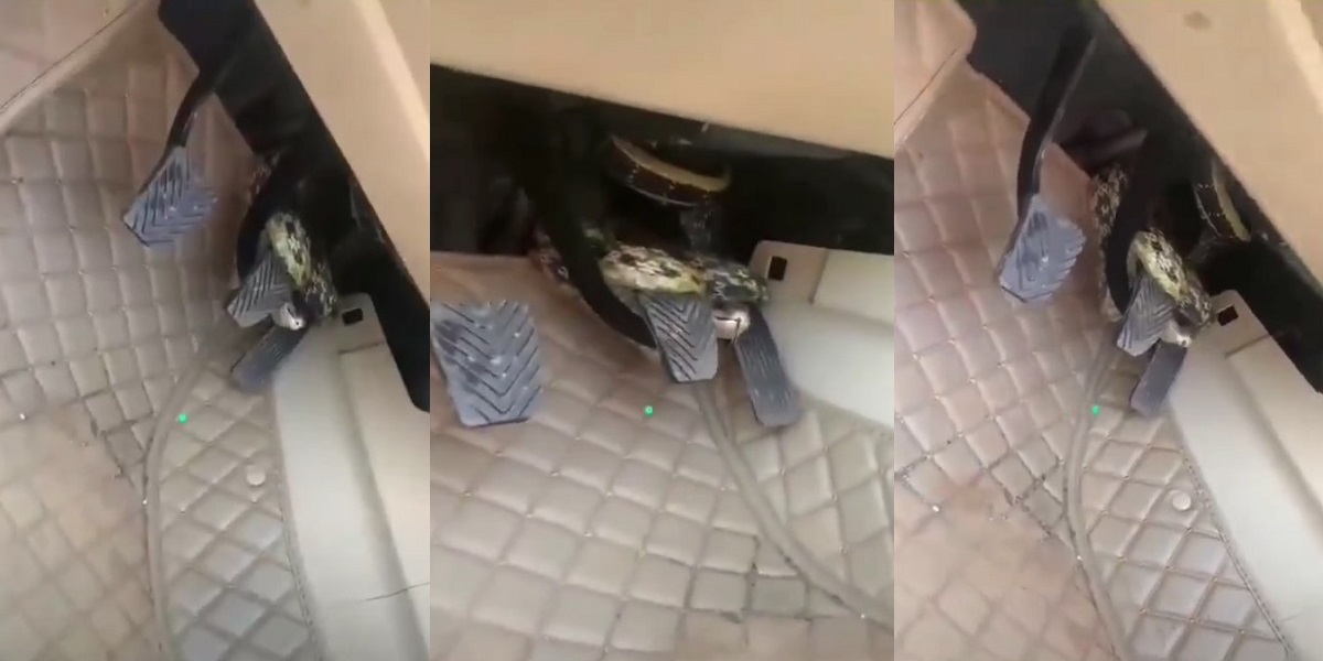 A video making arounds online shows the scary moment a snake was found coiled around the pedals of a car, sparking fear and concern.