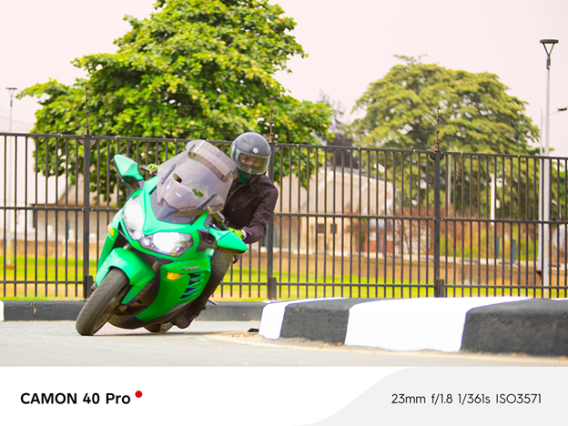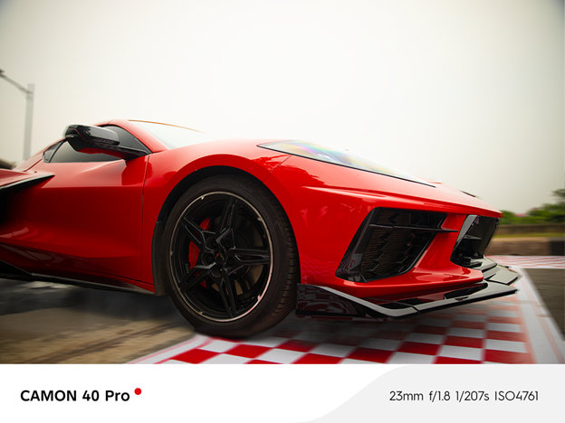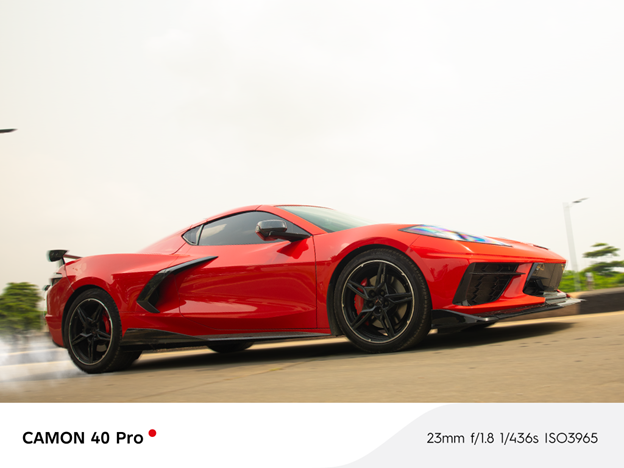 The same thing happened when the camera was tested on a fast-moving car. The challenge? Capturing every detail of the vehicle, despite its high speed. In a split second, the CAMON 40 locked focus, adapted exposure and snapped the perfect frame. No streaks, no distortions—just pure precision. [See the fast car shot here.]