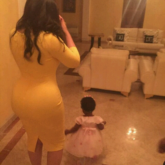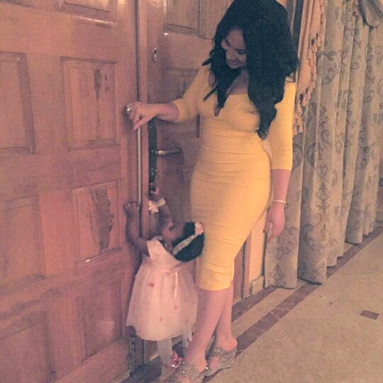 Caroline Danjuma, who recently was engaged in an IG brawl with next rated act, Cynthia Morgan, is seen here with her adorable looking daughter at their home.