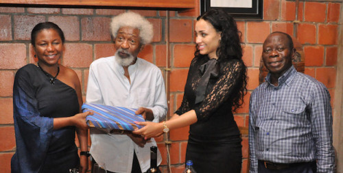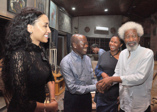 Governor of Edo State, Adams Oshiomole and his first lady of the state wife, Lara Fortez paid a visit to Nobel Laurette, Professor Wole Soyinka and his wife at their Abeokuta home on Sunday, 2nd of August, 2015.