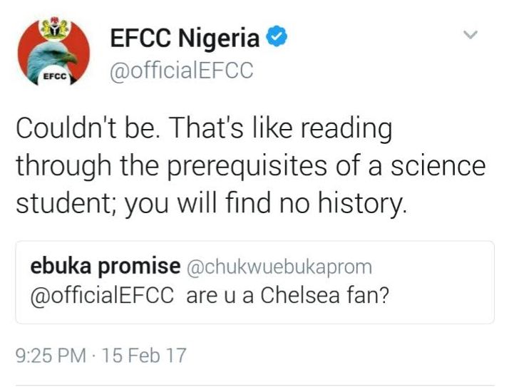 If you’re looking for crime news updates with a blend of sarcasm and pettiness, then you should go follow the official handle of the EFCC on Twitter, whoever is behind that account is a pure savage. #JustSaying.