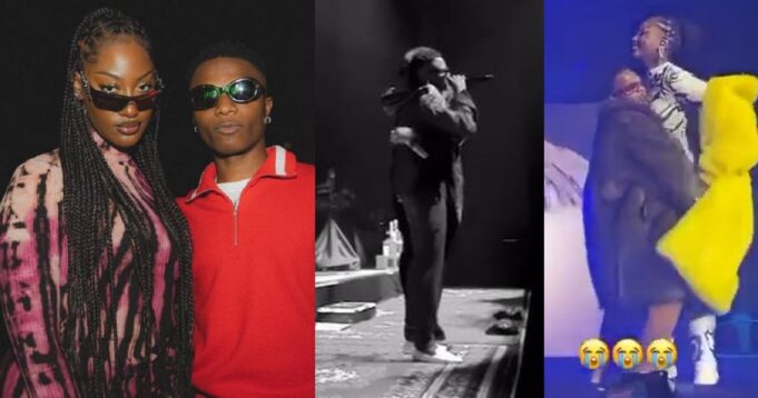 Fans of legendry Nigerian singer, Wizkid, have reacted after their favorite was dragged for trying to lift singer, Tems up on stage last night.