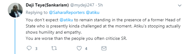 A photo showing the former vice-president squatting to address Babangida has since circulated on social media.