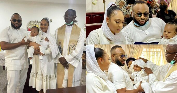 Nigerian businessman and philanthropist, Olakunle Churchill and his spouse, Nollywood actress, Rosy Meurer christened their son, King Andre at Church Of The Assumption, Ikoyi earlier today, September 23rd, 2021.