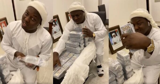 In the now viral video the C.E.O of Obieze oil & gas and Obieze motors Nig Limited, was seen flaunting wads of Dollars.