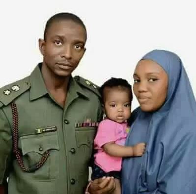 Lt. Col Mohammed Abu Ali who was killed by Boko Haram terrorists left behind a young wife and child. Ali and four other soldiers were killed late on Friday, November 4 by Boko Haram insurgents after a fierce battle, a statement by Army spokesman, Colonel Sani Usman announced.