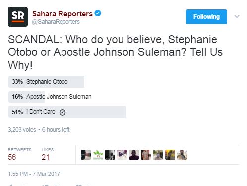 So this Twitter poll organised by the publishers who first broke the sex scandal story, shows that people couldn’t care less on who’s to believe in the whole hullabaloo.