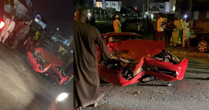 Social Media user, @akojiusman, who shared the photos of the wrecked super car on his page, wrote;