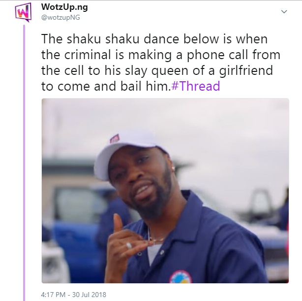 The shaku shaku dance below is when the criminal is making a phone call from the cell to his slay queen of a girlfriend to come and bail him.#Thread