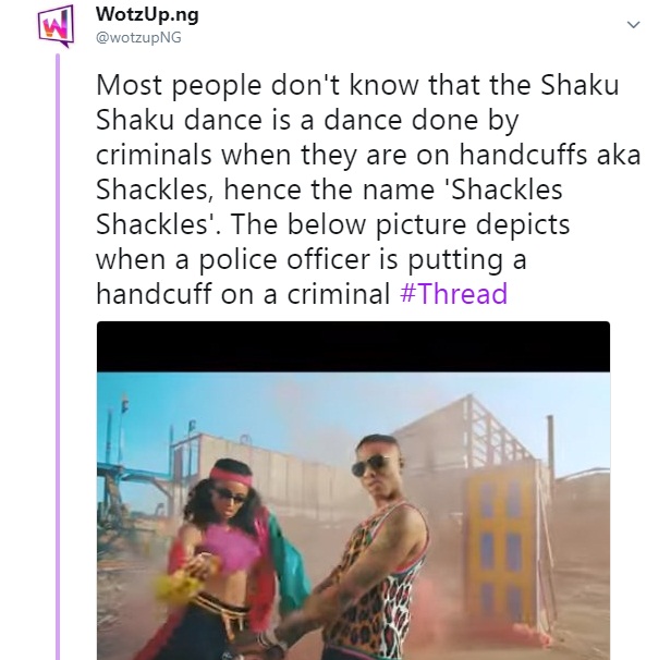 Most people don’t know that the Shaku Shaku dance is a dance done by criminals when they are on handcuffs aka Shackles, hence the name ‘Shackles Shackles’. The below picture depicts when a police officer is putting a handcuff on a criminal #Thread