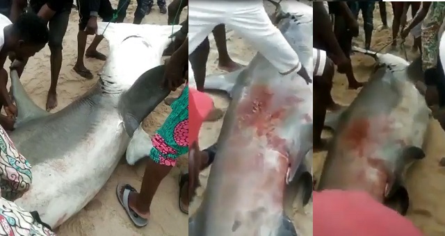 A hammerhead Shark was killed today after the giant fish washed up at Orimedu in Ibeju-Lekki area of Lagos State.