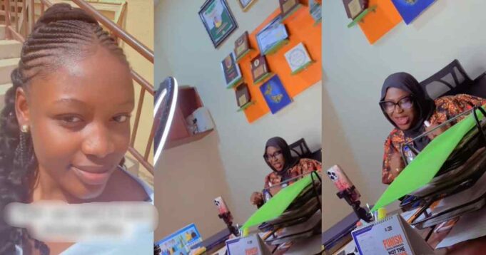 She captured the female lecturer’s fun performance, revealing the presence of a ring light and phone stand to enhance the video.