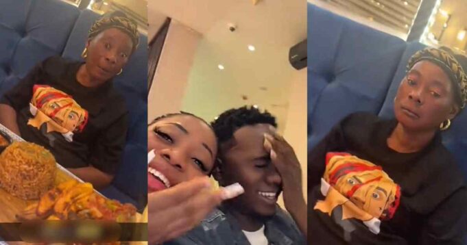 In the video, the man @boy_iyanu1 noted that he had taken his African mother to a fancy restaurant but her facial expression when the food was served left him in stitches.