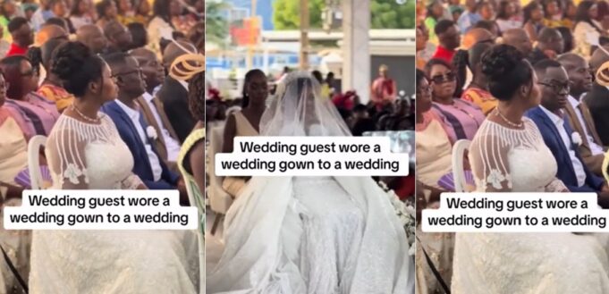 The video of a wedding guest wearing a wedding dress in a wedding ceremony has startled many netizens online, with different assumptions on why she decided to attend the event wearing a wedding gown.