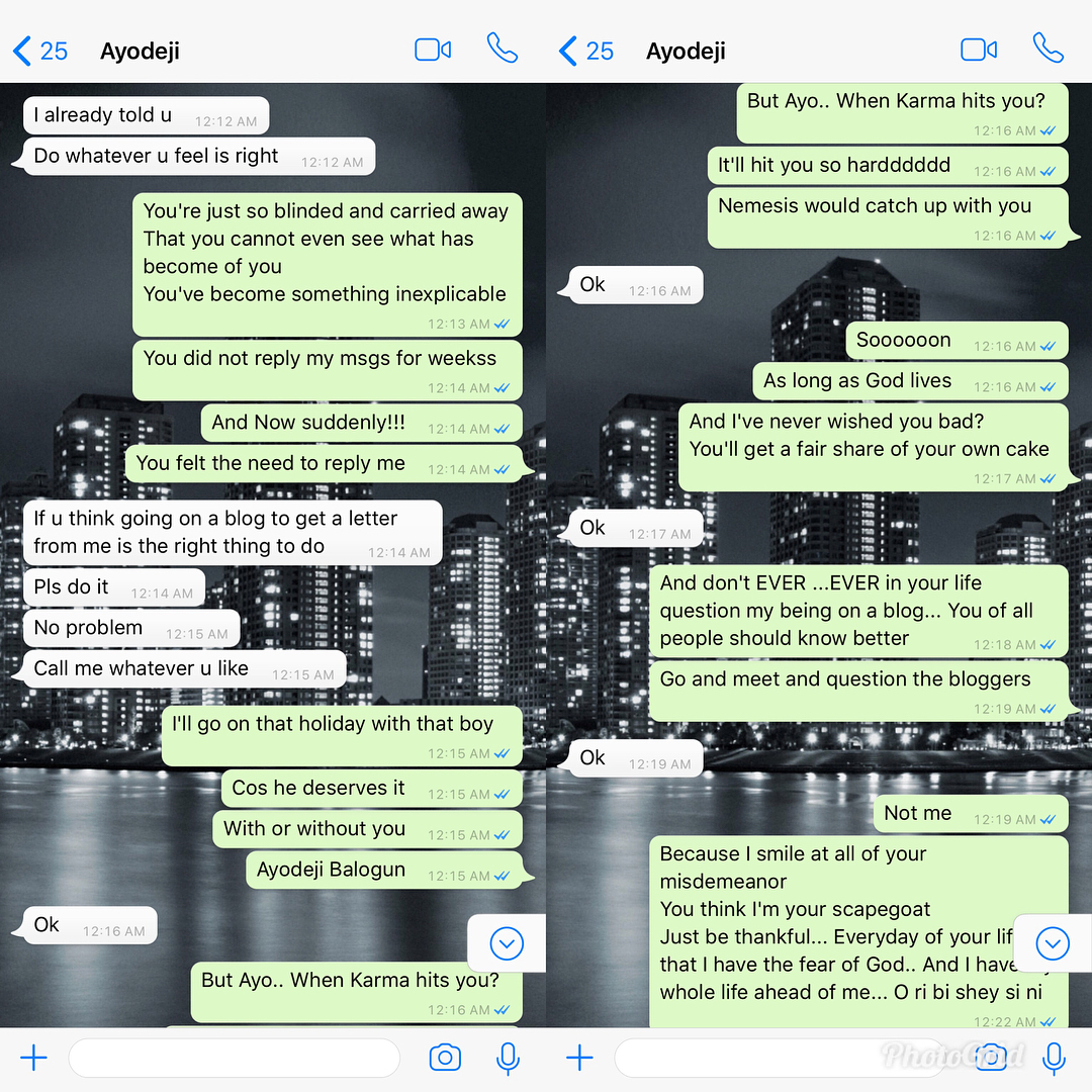 She shared Screenshots of Her Whatsapp Chats with Wizkid:
