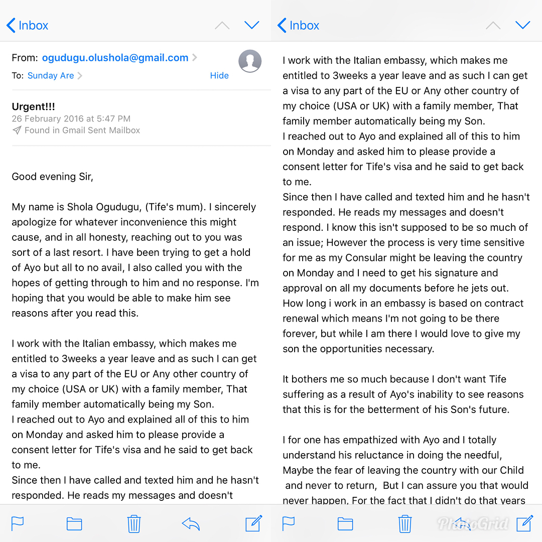 Emails she sent to Wizkid’s Manager, Sunday Are: