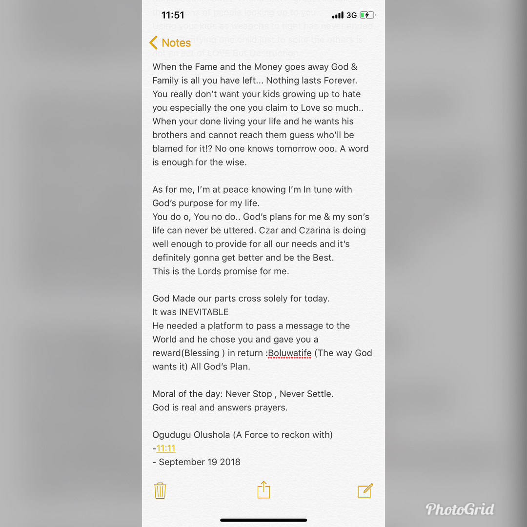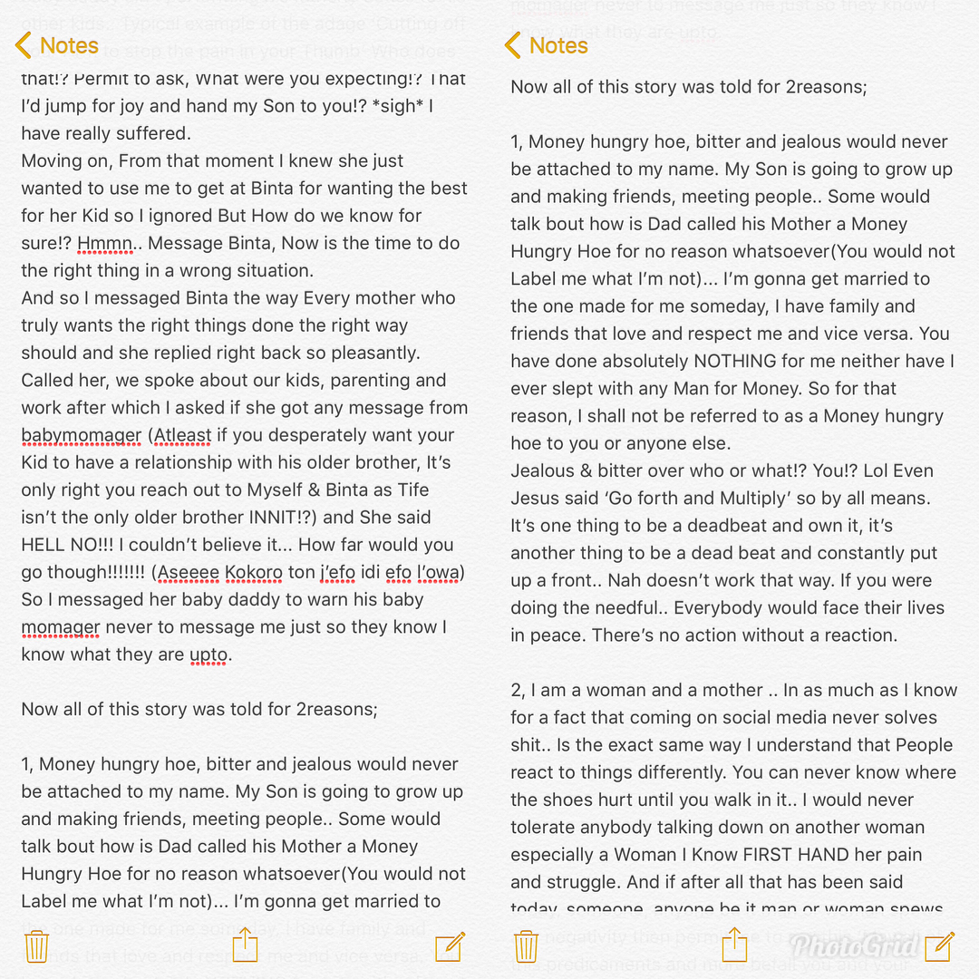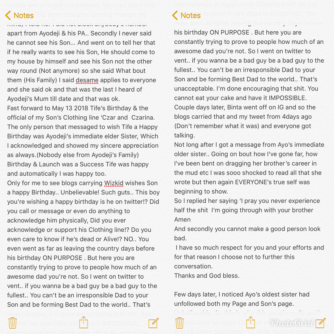 So, Wizkid’s First Babymama is the first to fire back at the singer, after he labeled his First and Second Babymama, Shola and Binta as ‘Money Hungry hoes’.