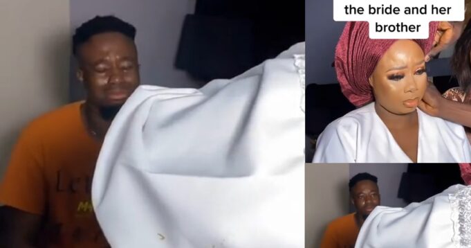 The siblings shed tears much to the amazement of friends and family present as the bride got ready for her wedding.